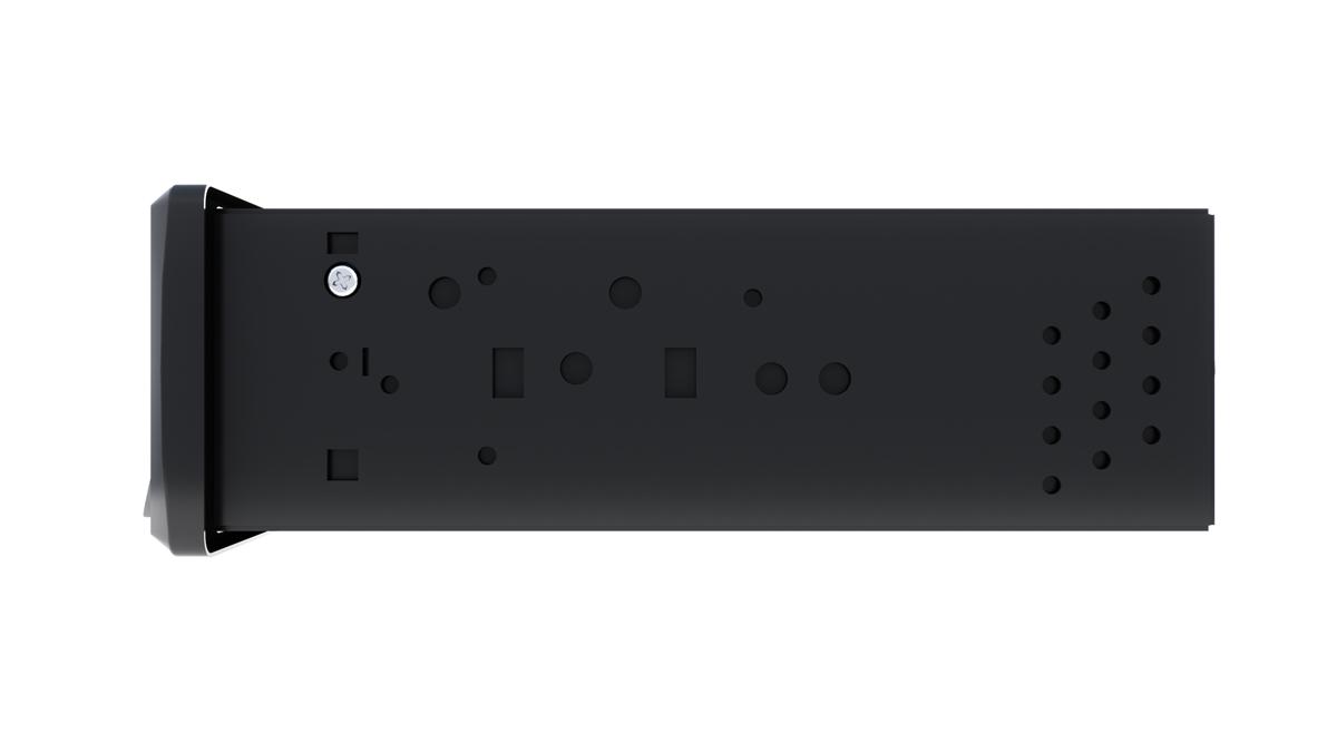 Корма выглядит лаконично и строго. Там расположена колодка разъёма питания и акустики, линейный выход сабвуфера. Мини-джеки для подключения выносного микрофона и рулевого управления, гнездо антенны. И всё!